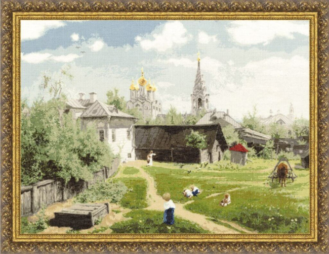 Набор создан по мотивам одноимённой картины русского художника Василия Дмитриевича Поленова (1844-1927 гг). На картине изображён двор дома, расположенного на пересечении Дурновского и Трубниковского переулков, во флигеле которого Поленов снимал квартиру в 1877-1878 годах. За двориком и прилегающими к нему строениями находится храм Спаса Преображения на Песках, а в правой части полотна видны очертания церкви Николая Чудотворца в Плотниках.| Скидка | 3 % | 5 % | 7 % | 10 % | 15 % |